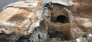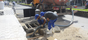 A maior parte da estrutura estava entupida ou danificada, o que causava os pontos de alagamento. As caixas de coleta estão sendo limpas e ampliadas.