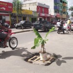 Revoltados com buracos moradores plantam bananeira no Centro de Teixeira de Freitas