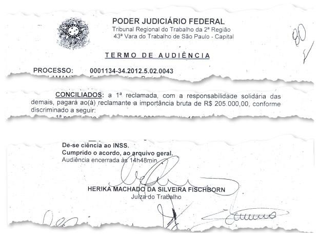 Vai pagar os R$ 205 mil a Fabiane em dez parcelas. Desse total, R$ 62.300 referem-se a uma indenização pelo assédio moral. O resto diz respeito ao passivo trabalhista: R$ 109.700 de férias, R$ 12.300 de FGTS não depositado, R$ 11.800 de vale-refeição, R$ 5.700 de multa.