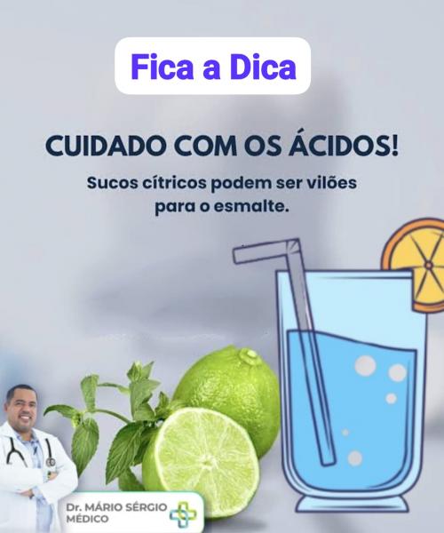 Dr. Mário Sérgio também recomenda enxaguar a boca com água logo após o consumo de bebidas ácidas, ajudando a neutralizar a ação do ácido e a preservar a saúde bucal.
