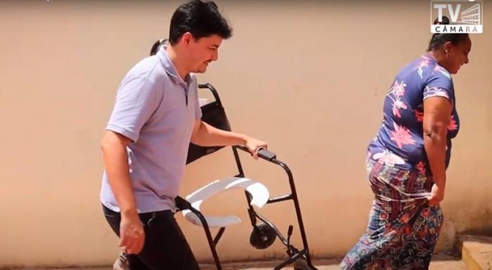 Bruno Barbosa entrega cadeira de rodas para idoso no Santos Guimarães