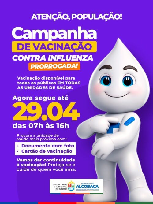 A população deve ficar atenta: a campanha de vacinação contra a influenza foi prorrogada e seguirá até o dia 29 de abril. A iniciativa tem como objetivo ampliar a cobertura vacinal e garantir maior proteção contra o vírus, especialmente com a aproximação de períodos de maior circulação de doenças respiratórias.