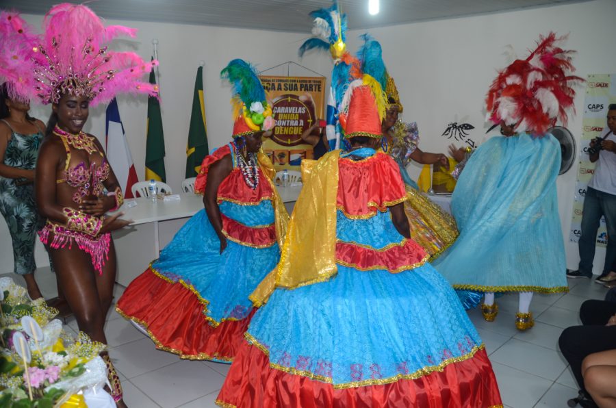 Com a apresentação de integrantes da Escola de Samba Irmãos Portela, os kits foram entregues aos agentes de endemias do município de Caravelas numa cerimônia realizada na tarde desta terça-feira, 19 de março, na sede da Secretaria Municipal de Saúde, por meio de parceria entre a prefeitura de Caravelas e o Núcleo Regional de Saúde (NRS) Extremo Sul.