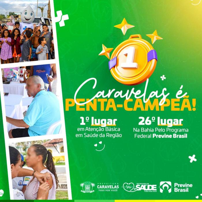 DESEMPENHO DE CARAVELAS NO PREVINE BRASIL: Desde a implementação do Previne Brasil, o município de Caravelas vem se mantendo no topo, em comparação com outros municípios da região extremo sul da Bahia, caindo uma única vez para a segunda posição, no primeiro quadrimestre de 2022. Desde então, voltou à primeira posição e se manteve neste início de ano.