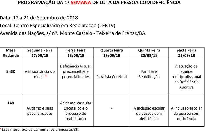 Até a sexta-feira, dia 21 de setembro, serão debatidos assuntos como Paralisia Cerebral, Autismo, Família e Reabilitação, Inclusão Escolar entre outros.